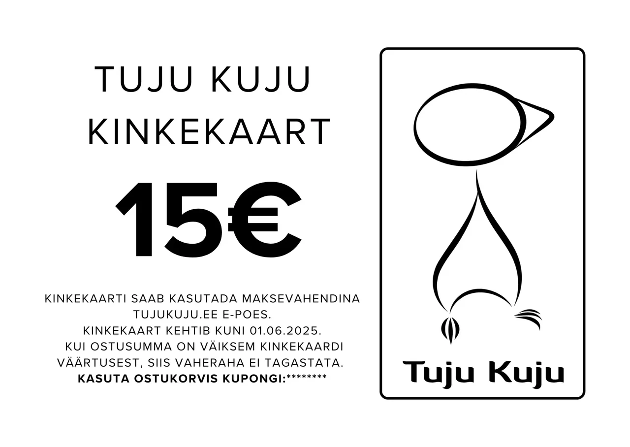 NB! Tegemist on virtuaalse kinkekaardiga, mille saadame sinu e-postile koheselt, kui oleme tellimust näinud.